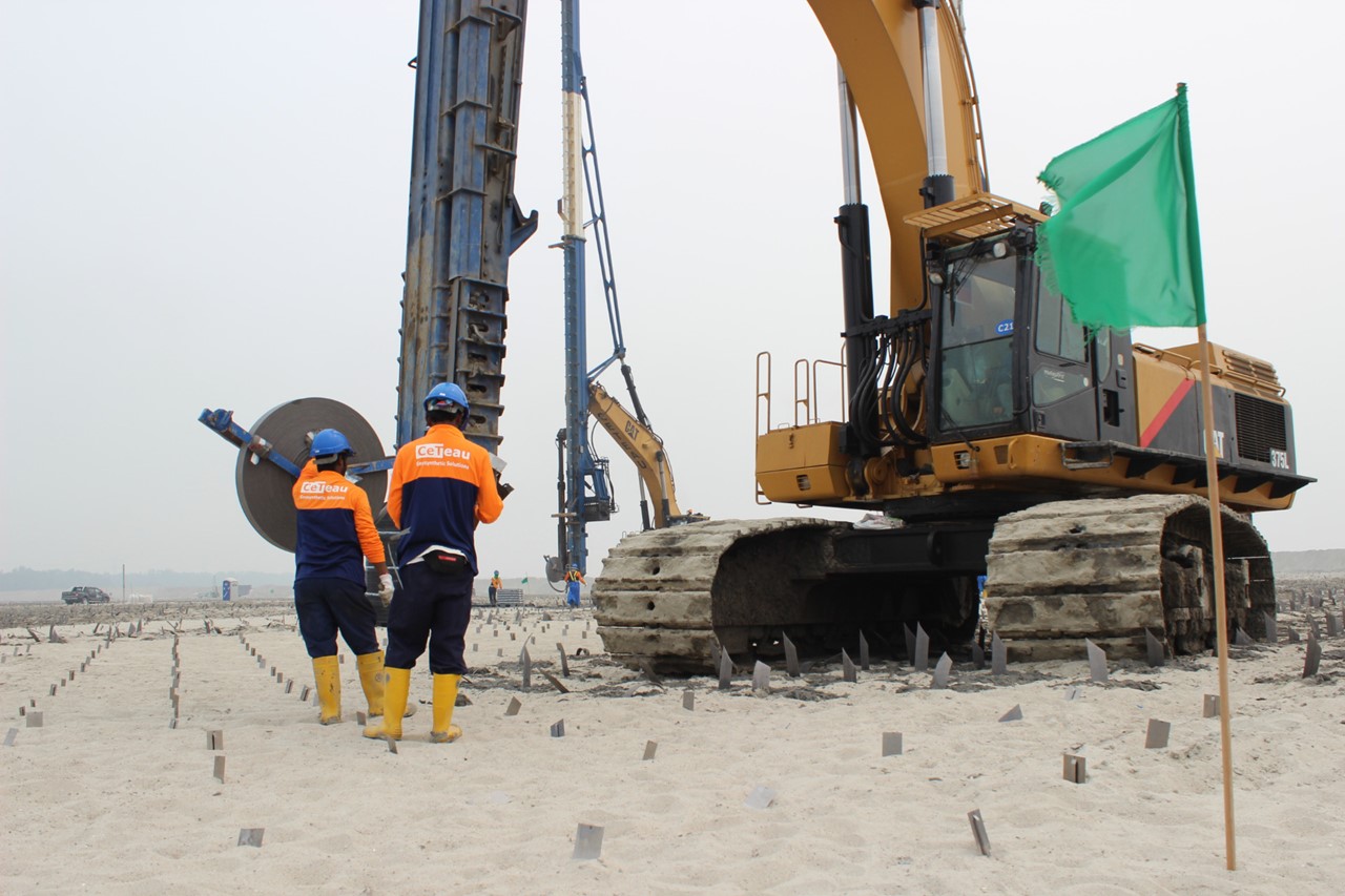 The installation of PVD will drain out the water fast to reduce settlements and will reduce the pore pressure to prevent liquefaction. The PVDs are installed vertically into the soft soil. This way drainage paths with high permeability are created in the soil. The distance the water must travel is thereby drastically reduced. Therefore, it only takes weeks or months instead of years for the water to escape. The soil will settle fast and will be capable to support the new loads.